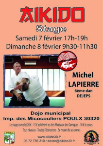 Stage d’Aikido les 7 et 8 février avec Michel LAPIERRE 6ème dan DEJEPS à Poulx