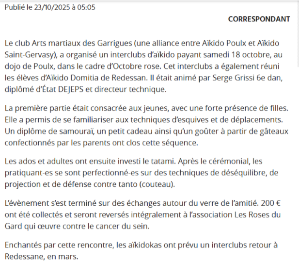 Fête de l’Aikido 14 juin 2025 à Poulx