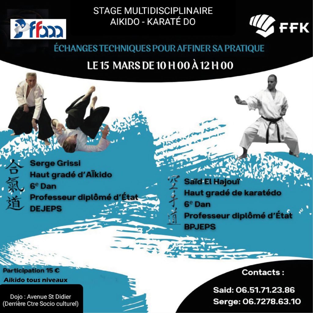 Il sera coanimé par Serge GRISSI 6ème dan Aikido DEJEPS, directeur technique d’Arts Martiaux des Garrigues et Saï EL HAJAOUI 6ème dan Karaté enseignant au club de St Gervasy